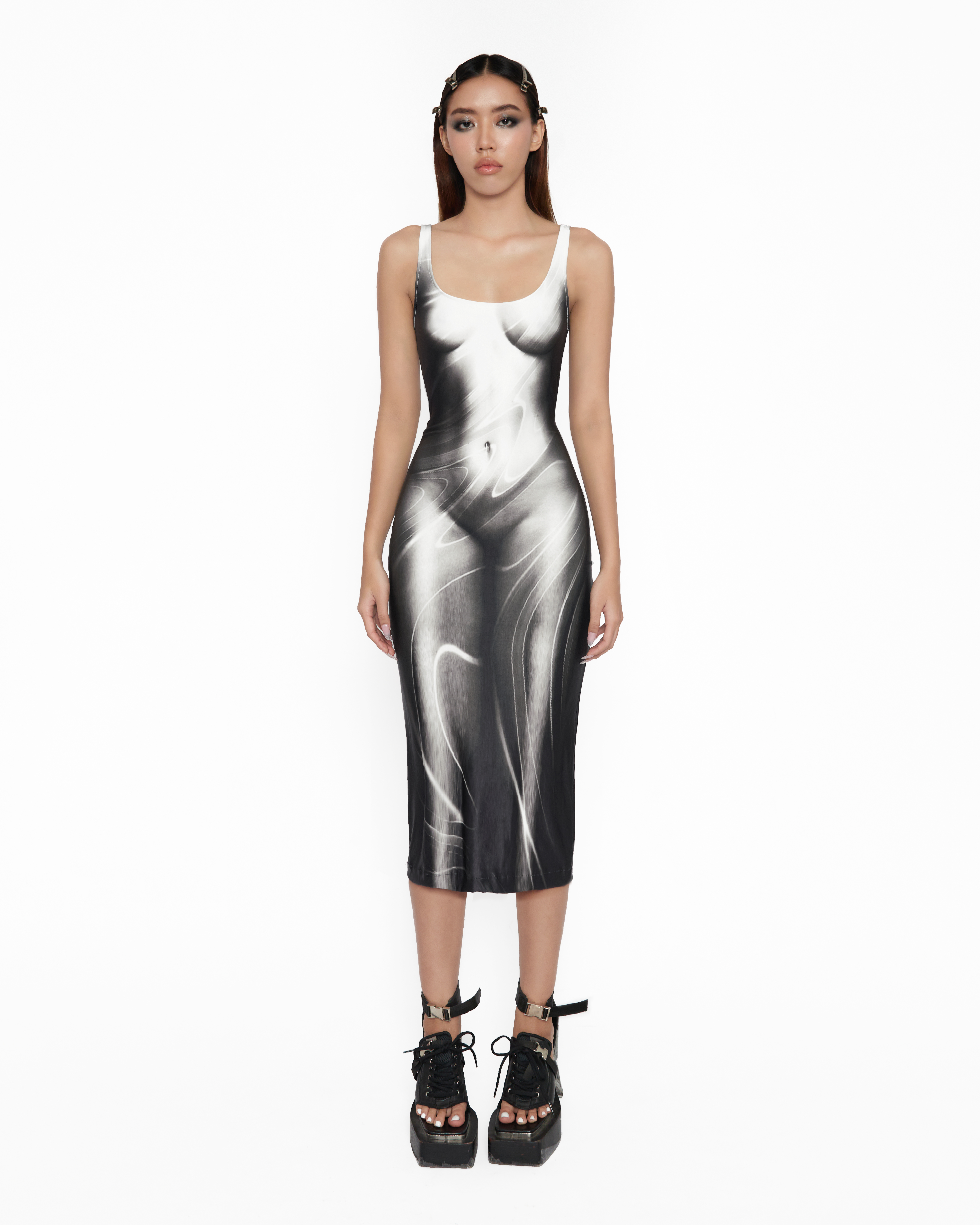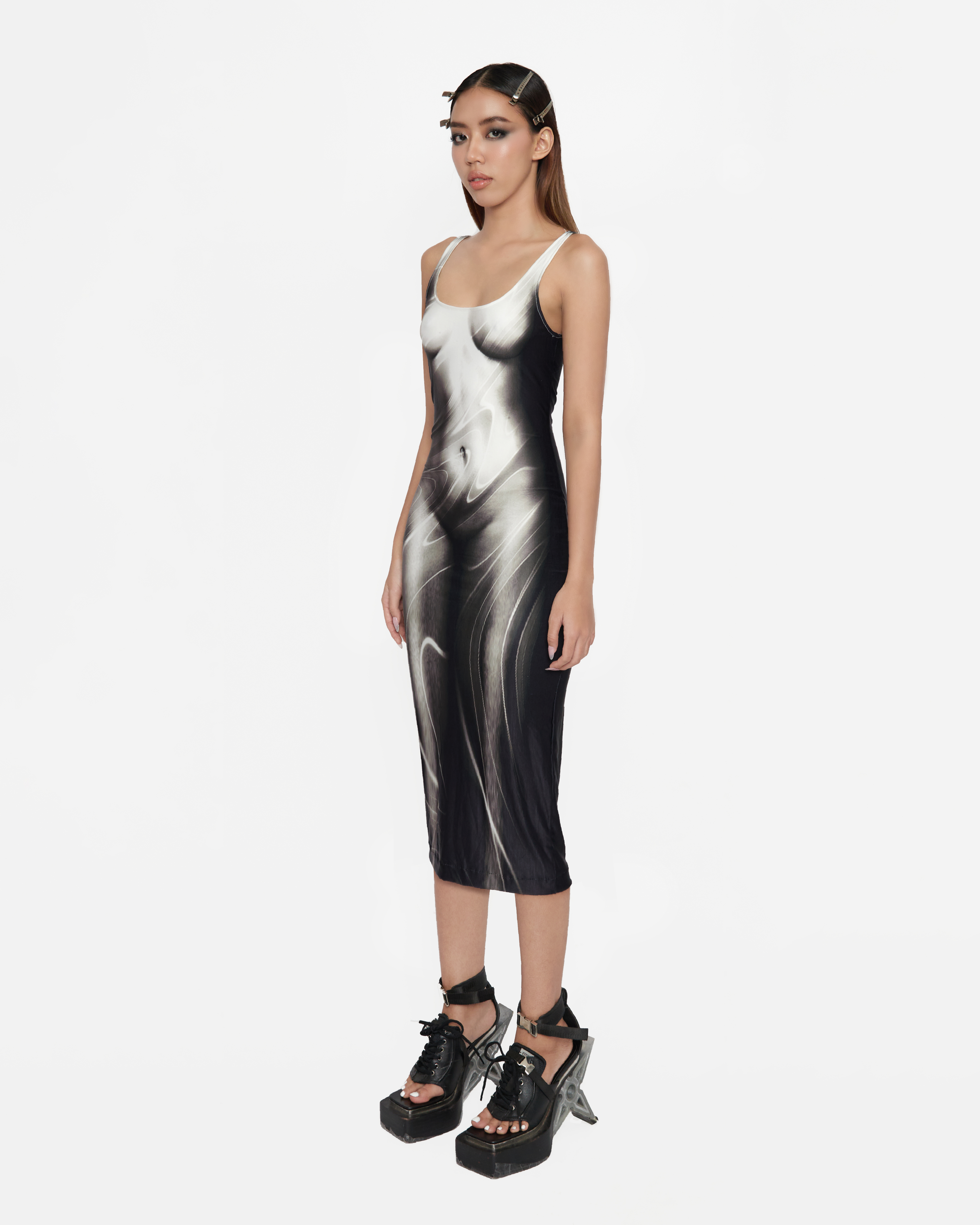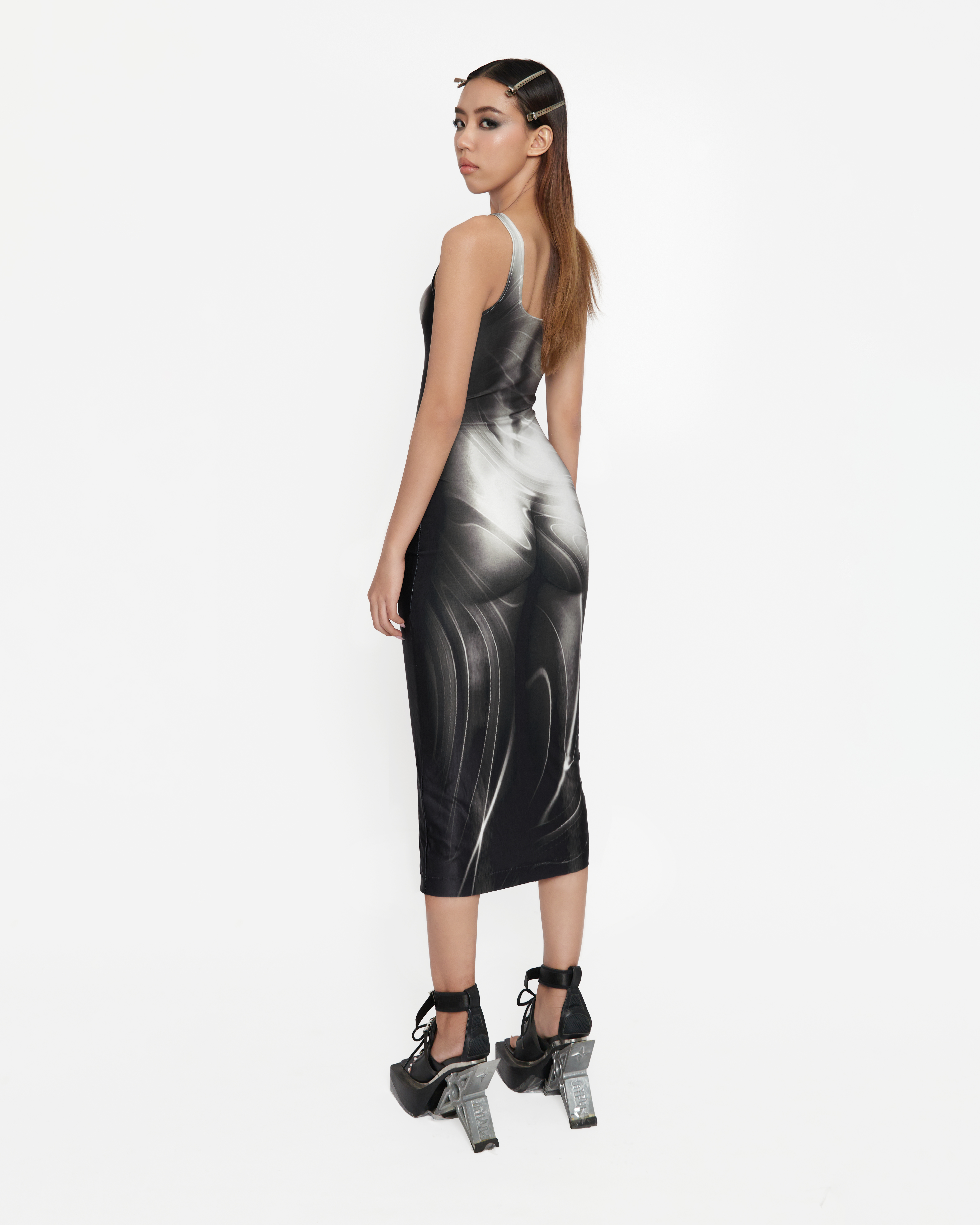 Long version body hugging dress, heat transfer printed, one layerStretchy materialCare :Machine wash ,dry clean or handwash with water