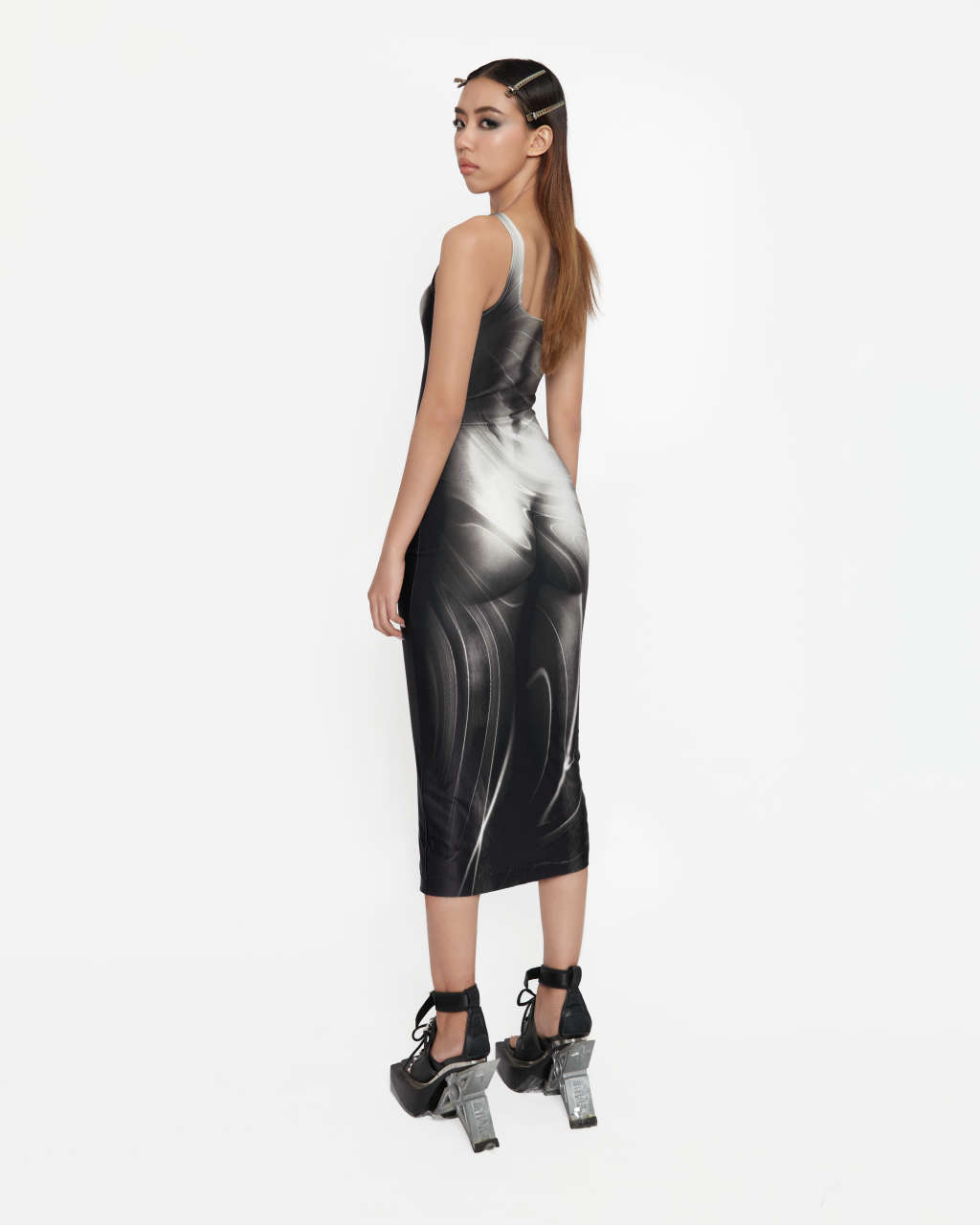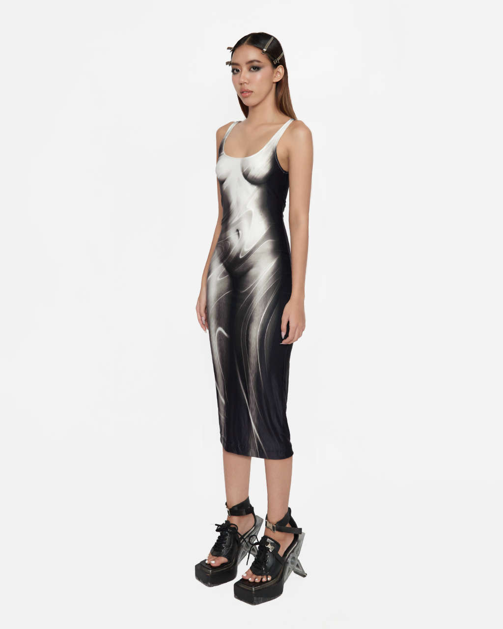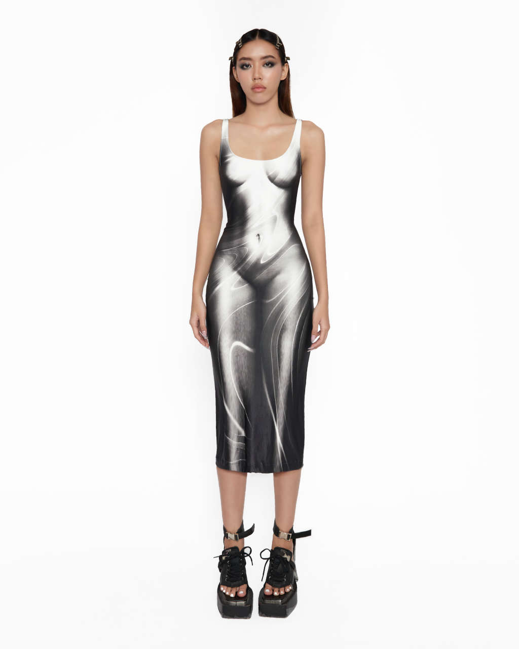 Long version body hugging dress, heat transfer printed, one layerStretchy materialCare :Machine wash ,dry clean or handwash with water