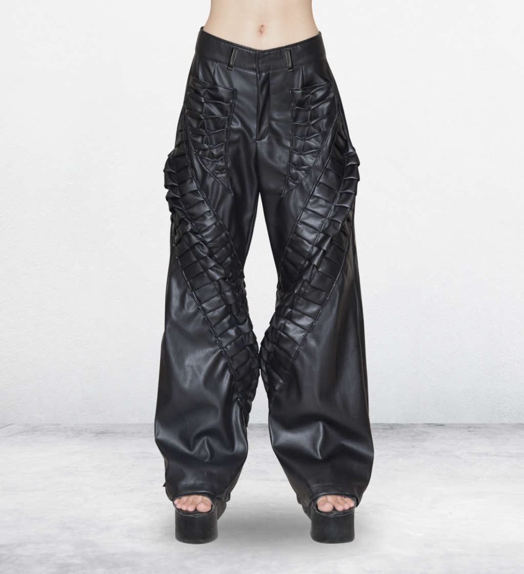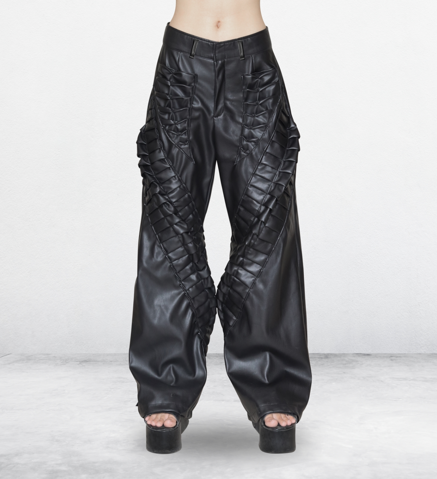 draping and pleating techniques, sewing pockets on the surfaceSimili imitation leather fabricCare :Dry clean or handwash with water