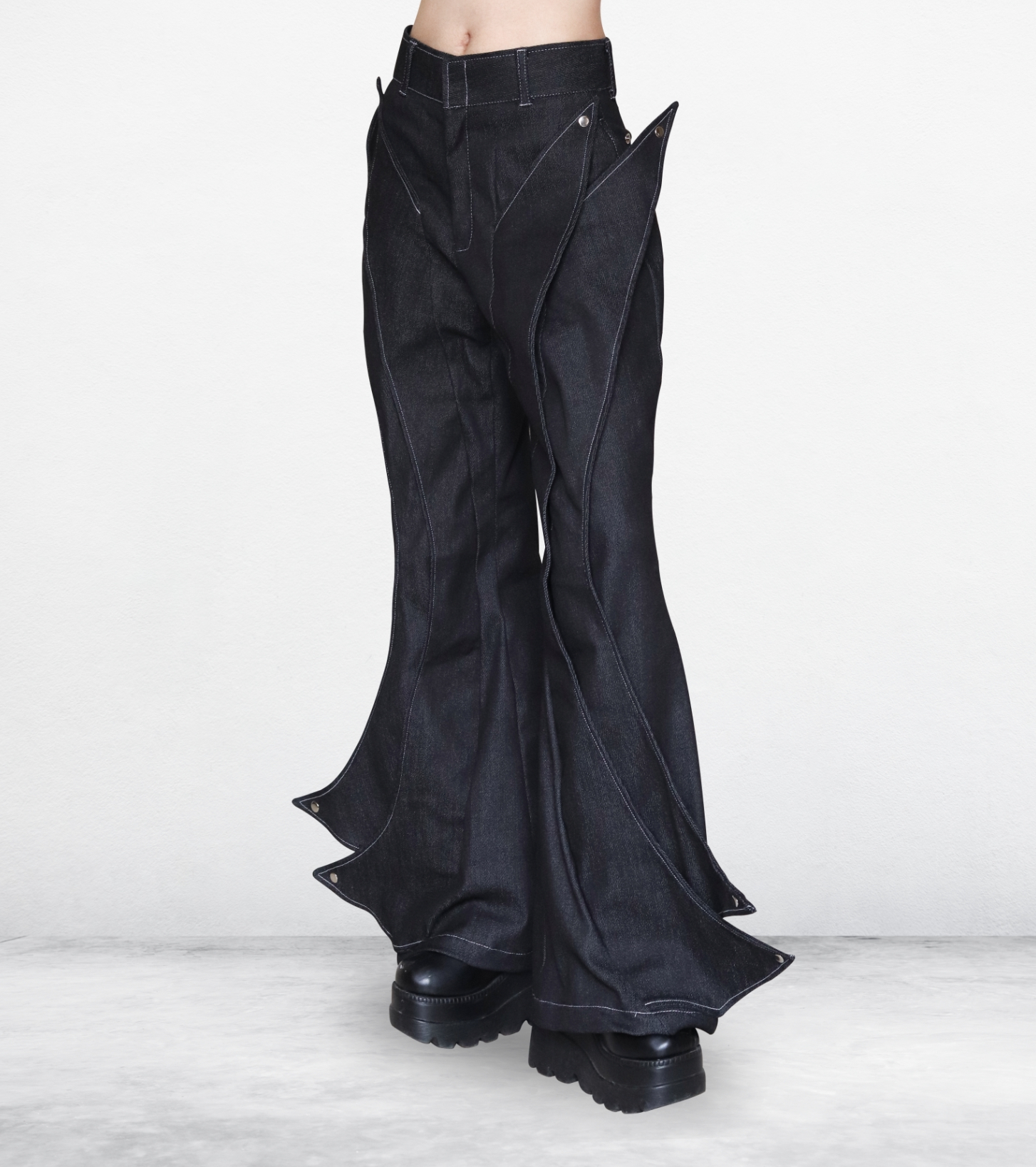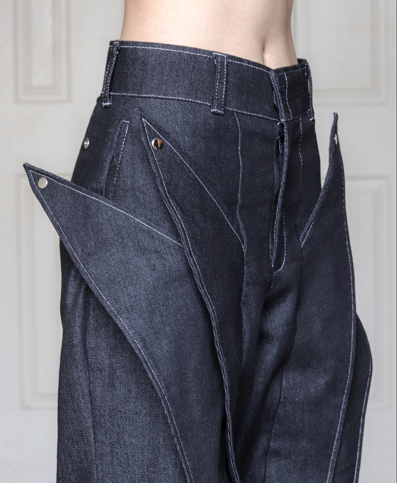 Two layers stacked on top of each other, buttons to closeRaw denim (unwashed)Care :Machine wash ,dry clean or handwash with water