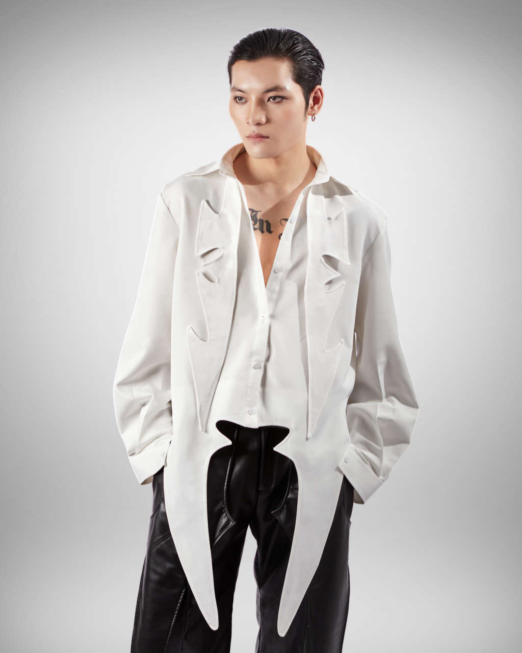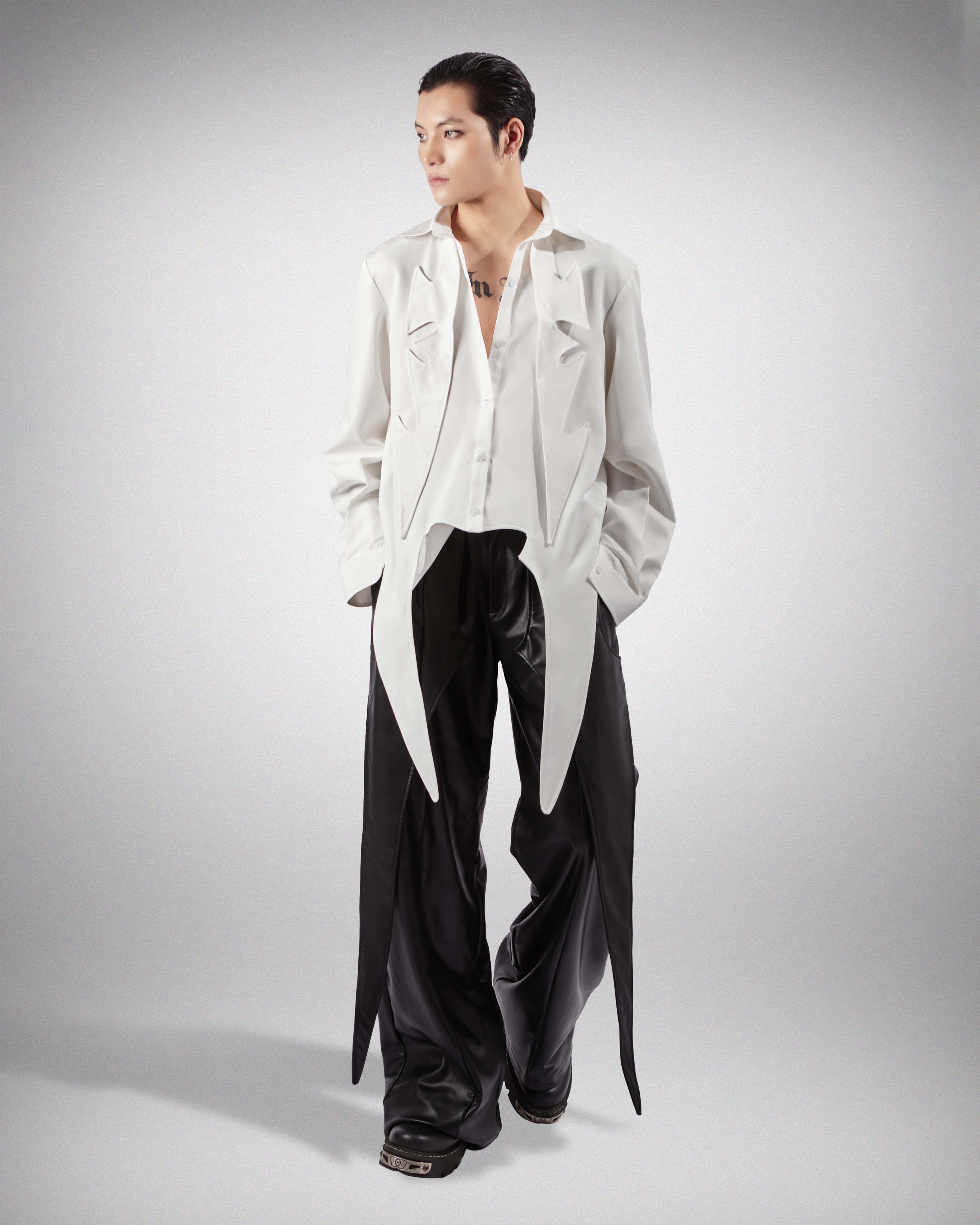 The shirt has 4 long flaps, 2 long strap details sewn upside down, placed under the neckcotton and polyester material, kate fabricCare :Machine wash, dry clean or hand wash with water